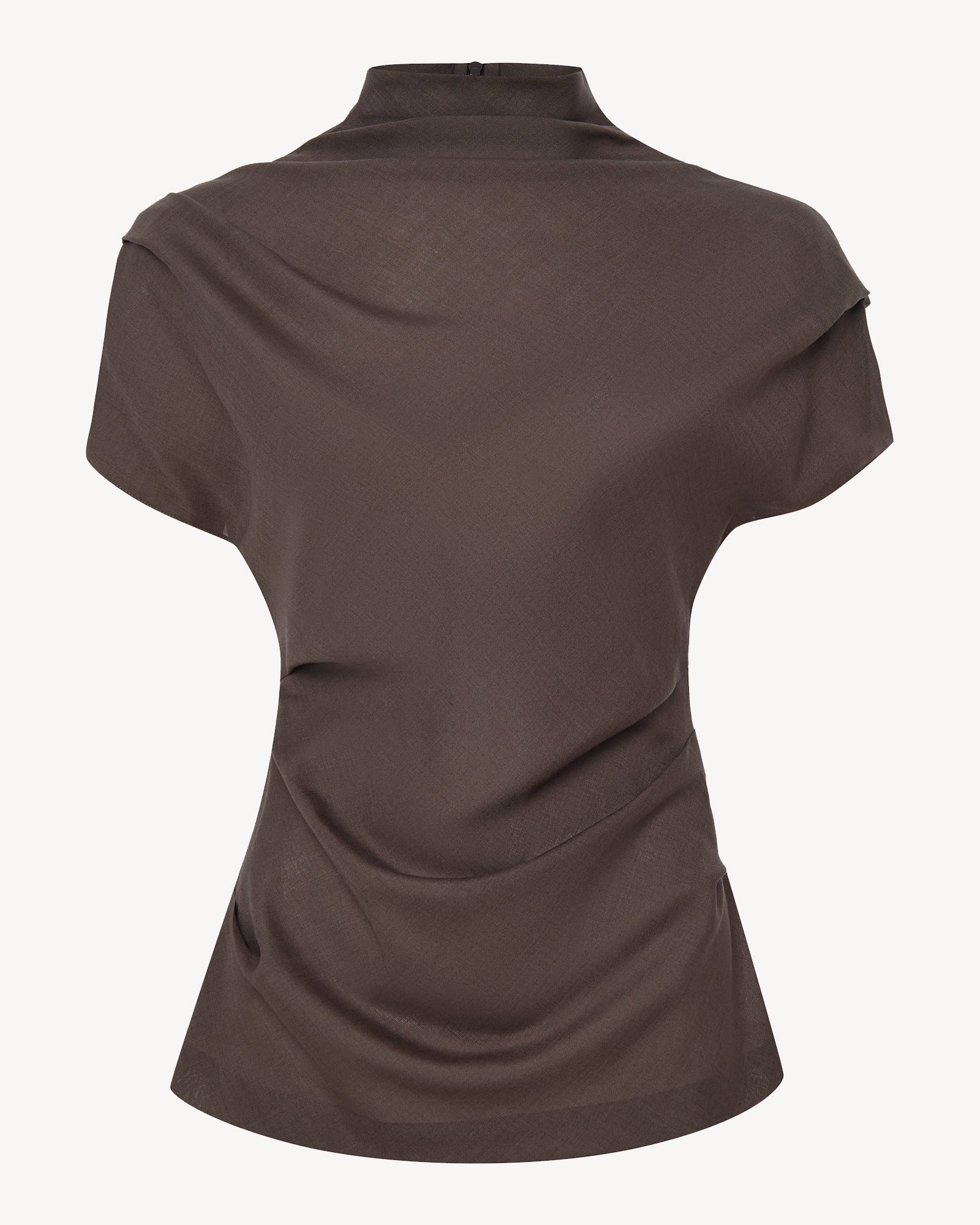 Топ на основе платья "Amea" сохраняет в себе те же принципы создания. Благодаря крою по косой с учетом диагонального плетения материала, в топе сохранилось анатомическое прилегание ткани, что позволяет изделию идеально смотреться на любой фигуре.