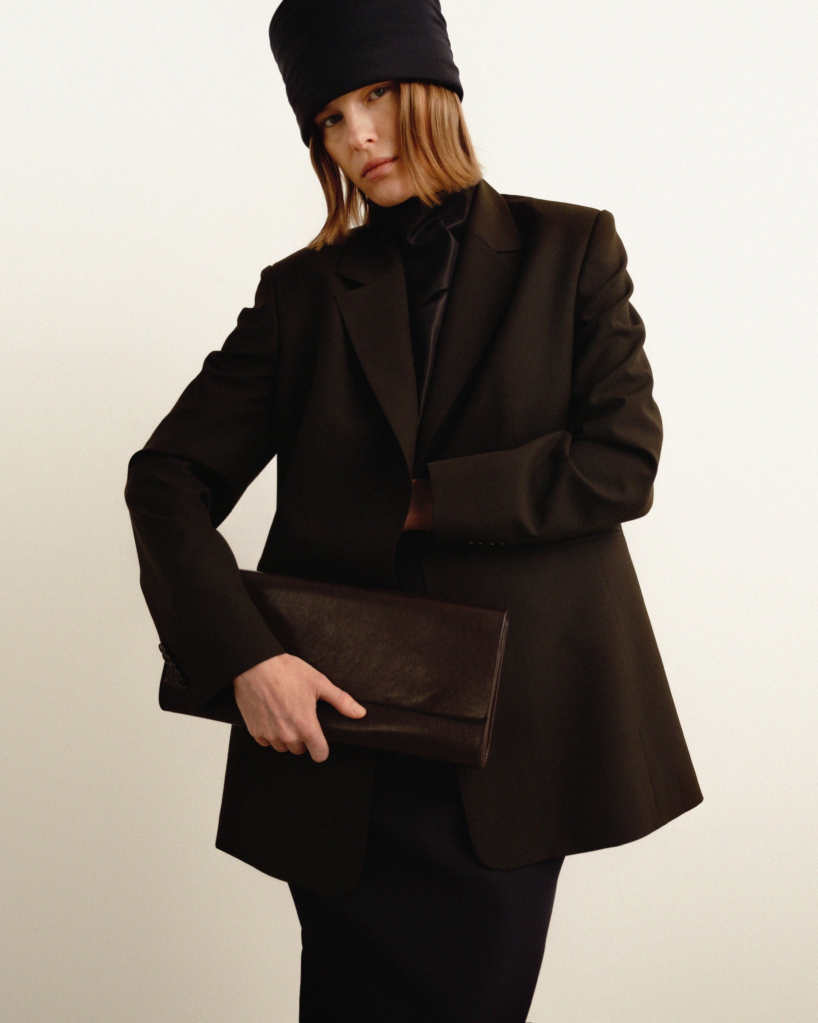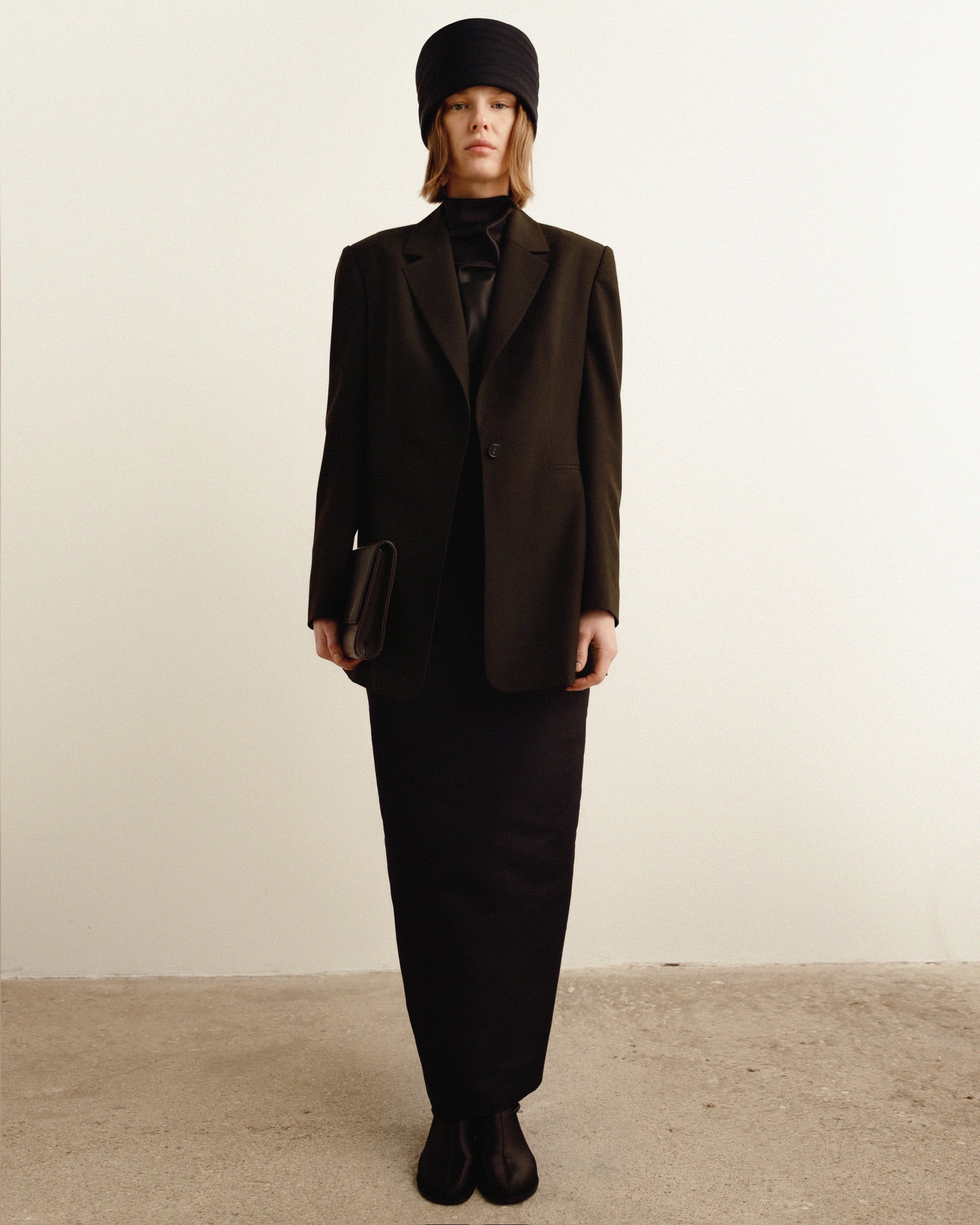 Приталенный жакет из коллекции "24" теперь представлен в новой ткани — 100% шерсти, идеально подходящей для осенне-зимнего сезона.