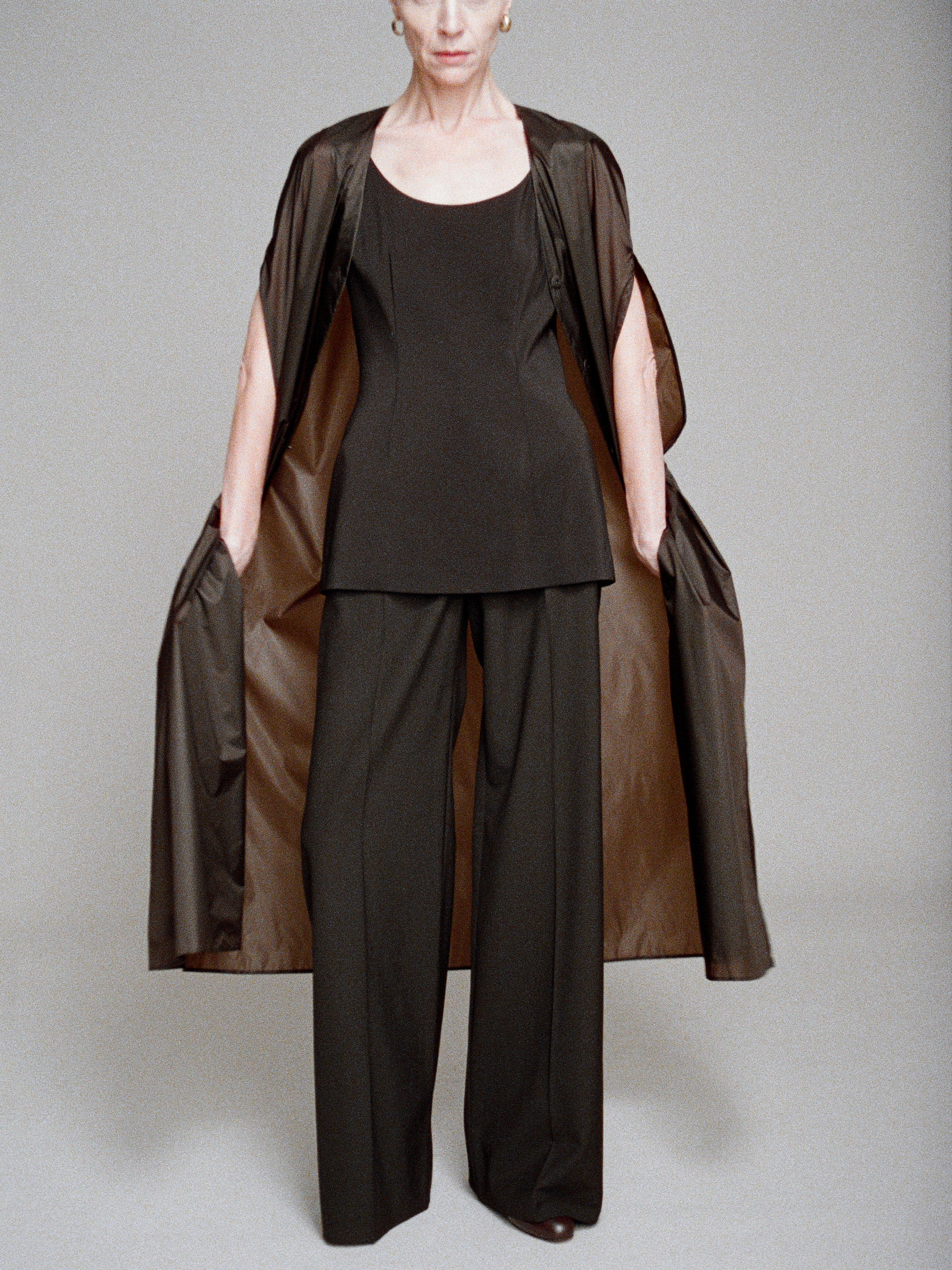 Облегающий топ из нежной вискозы на молнии сзади. Мягкие линии выреза и утонченный силуэт органично впишется в любой гардероб.