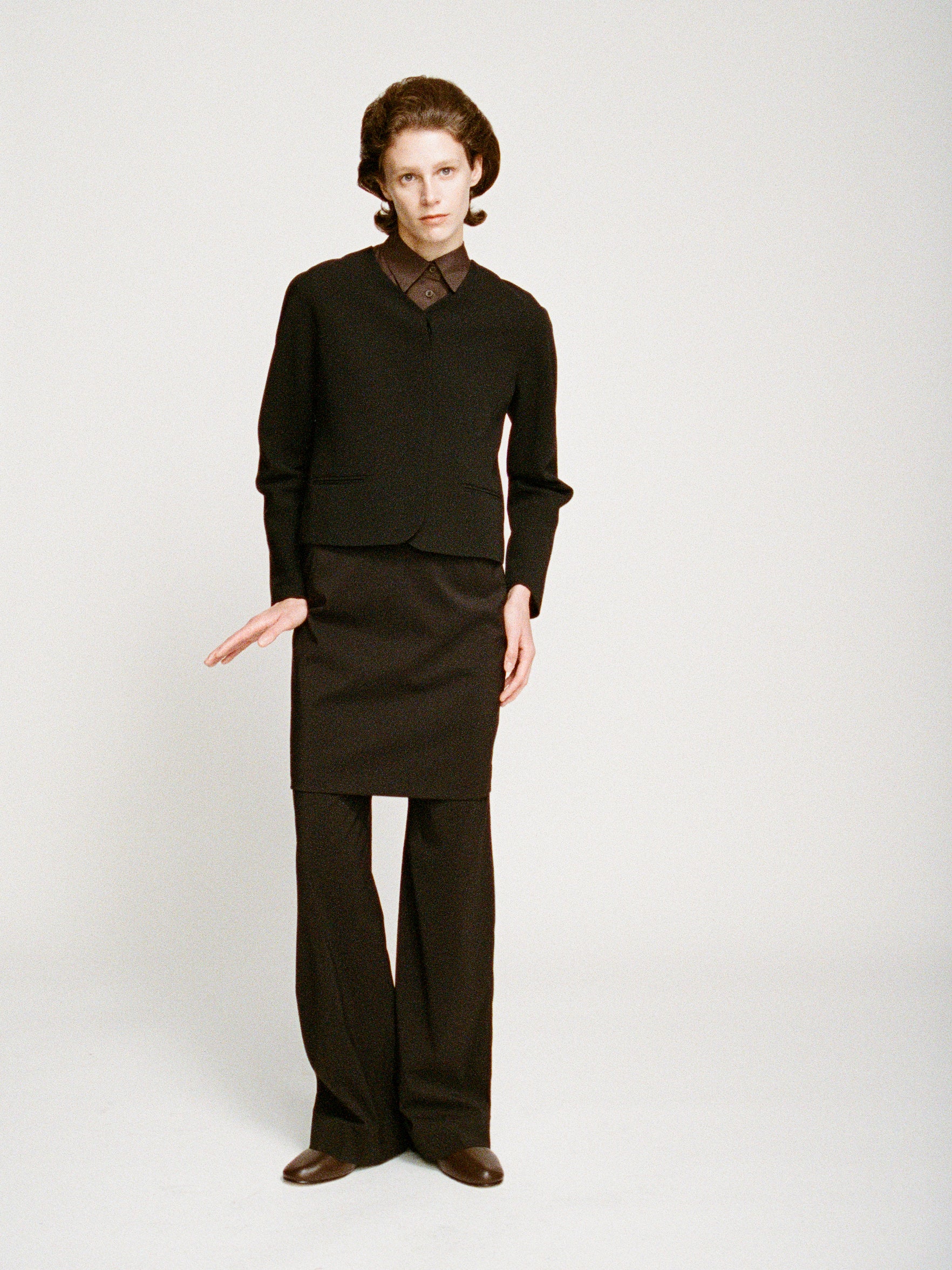 Укороченный жакет Mia из шелка с шерстью от легендарного модного дома Dior. Рекомендуем носить с юбкой Iren из такой же ткани либо заправлять жакет в черные джинсы Tyra. Стоимость включает создание модели по индивидуальным меркам.
