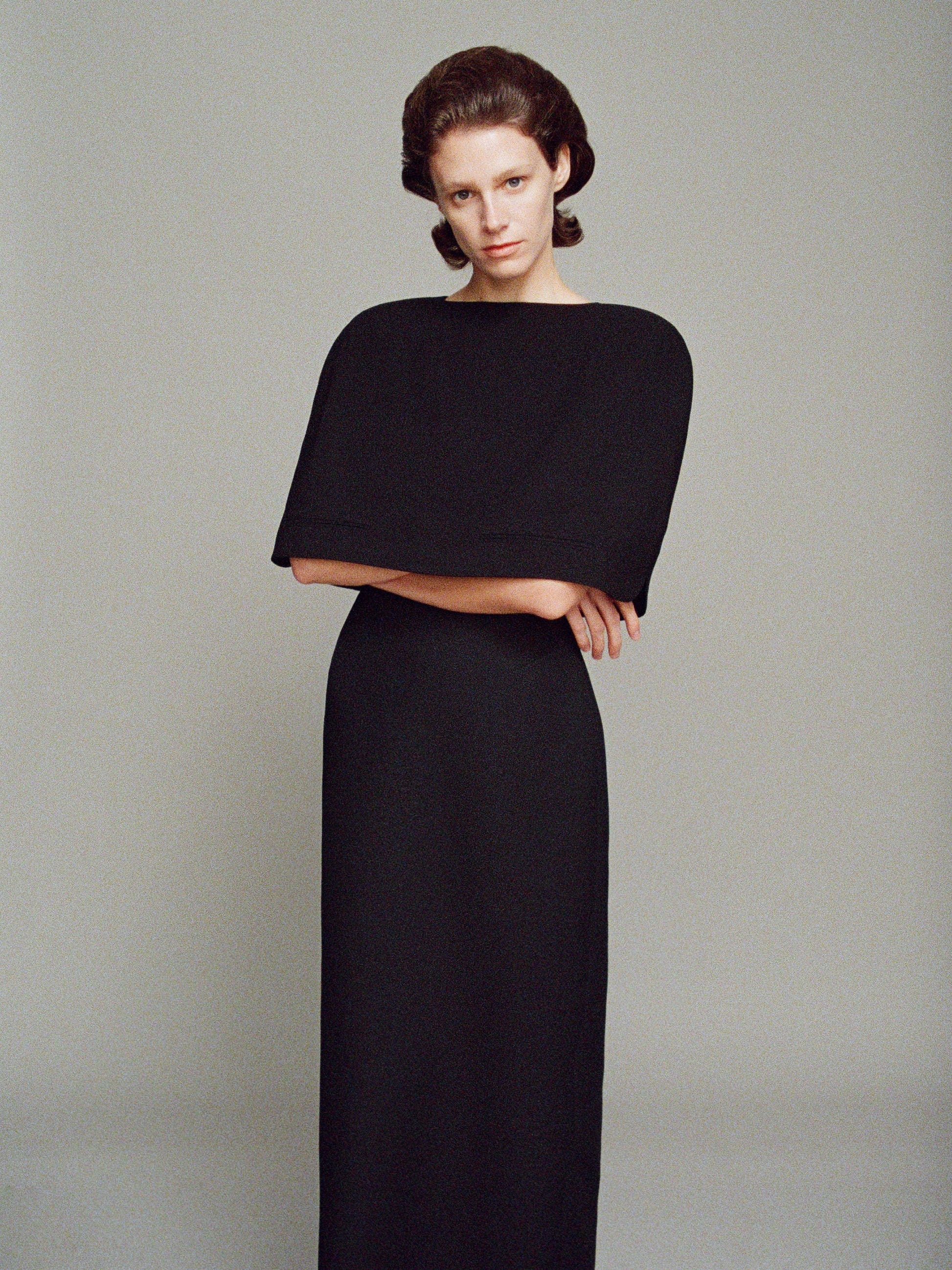 Мини-кейп "Триша" из текстурированной костюмной шерсти станет стильной заменой жакету. Плотная формодержащая ткань обеспечивает строгий силуэт. Модель дополнена декоративными прорезными карманами.